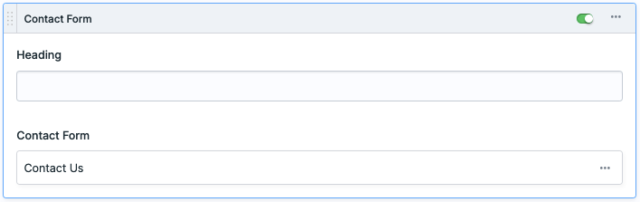 For å legge den til, er det så lett å koble til Contact Us formen. Heading er ikke nødvendig, og blir ikke brukt på f.eks. Kontakt oss.
