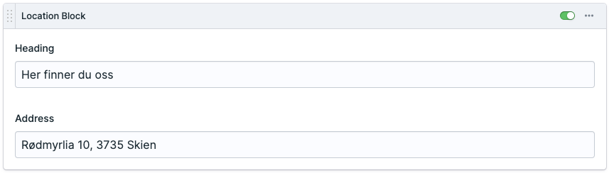 👆 Eksempel på hvordan Location Block ser ut på nettsiden i desktop-størrelse.